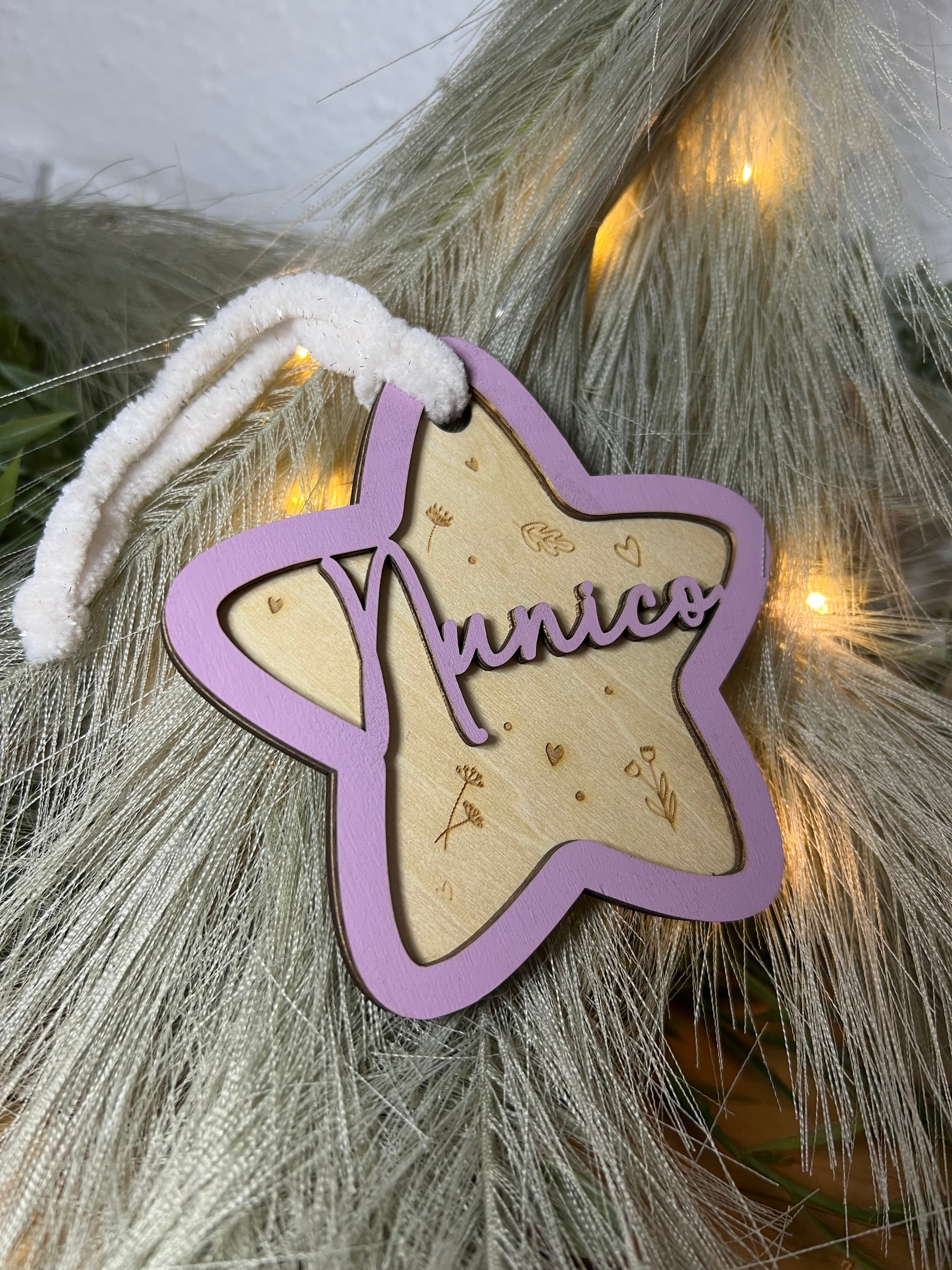 Adorno estrella con dos capas de madera, una de madera pintada del color que quieras.