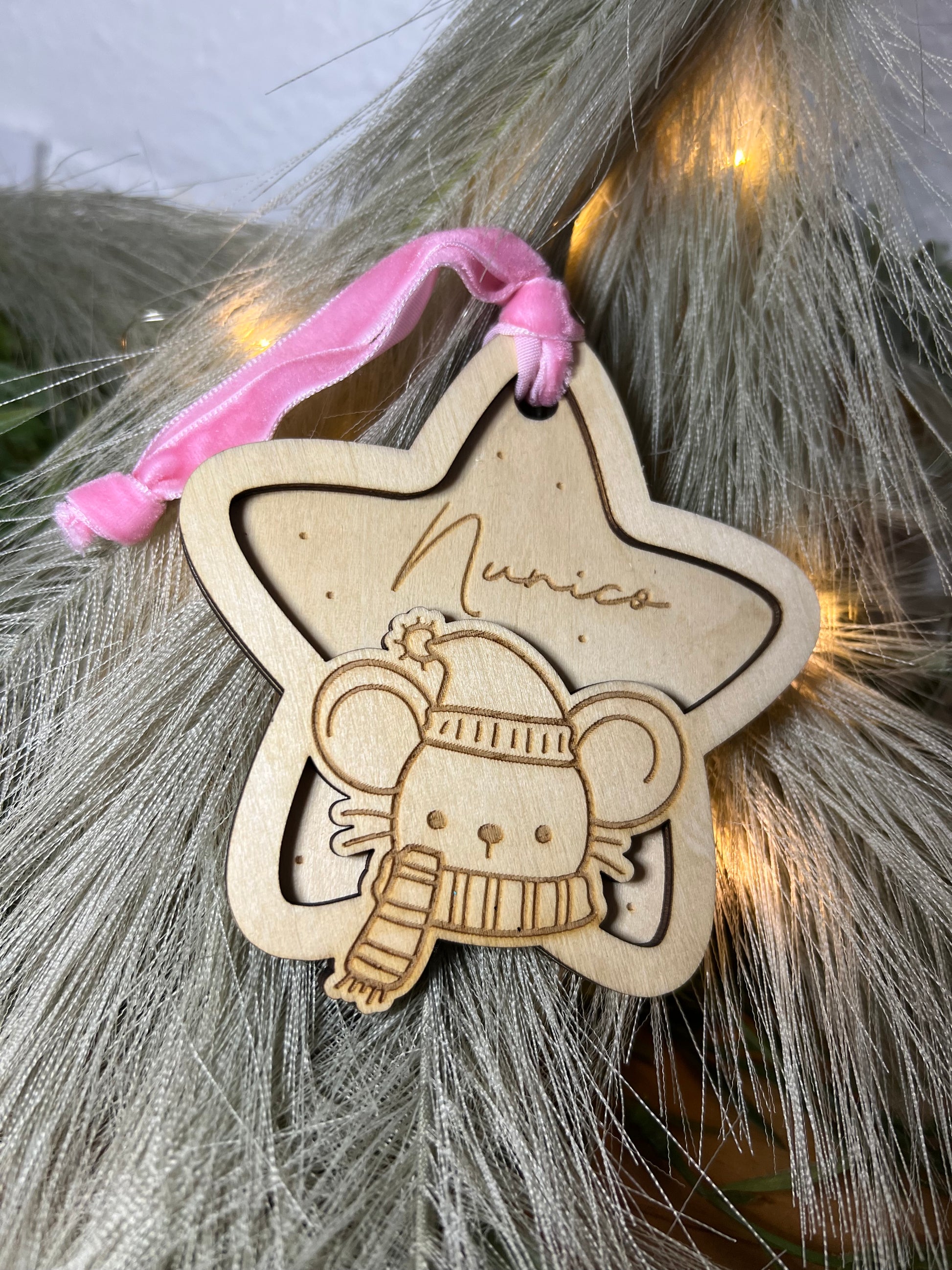 Adorno con forma de estrella de 9 cm, lleva el nombre grabado.