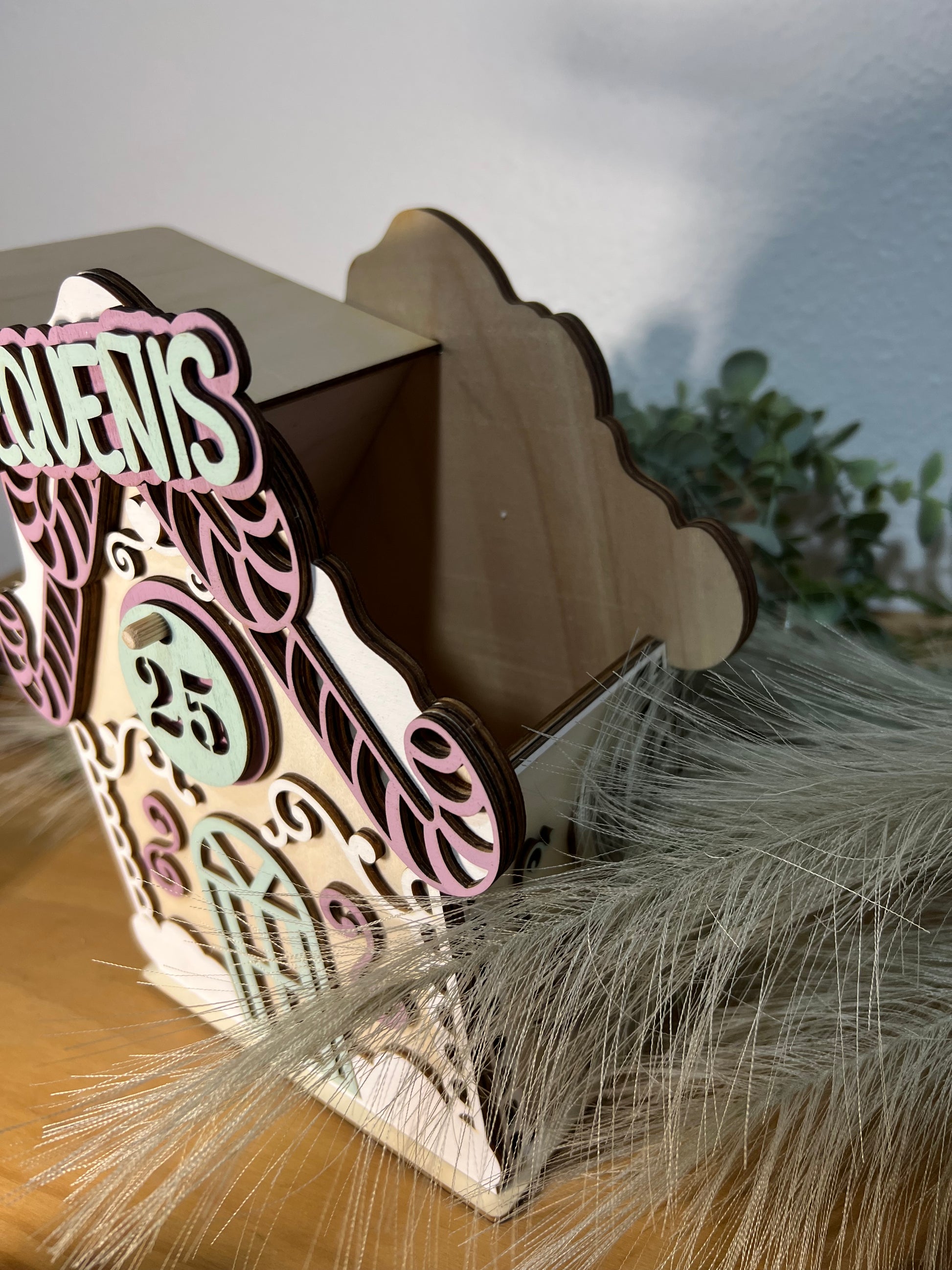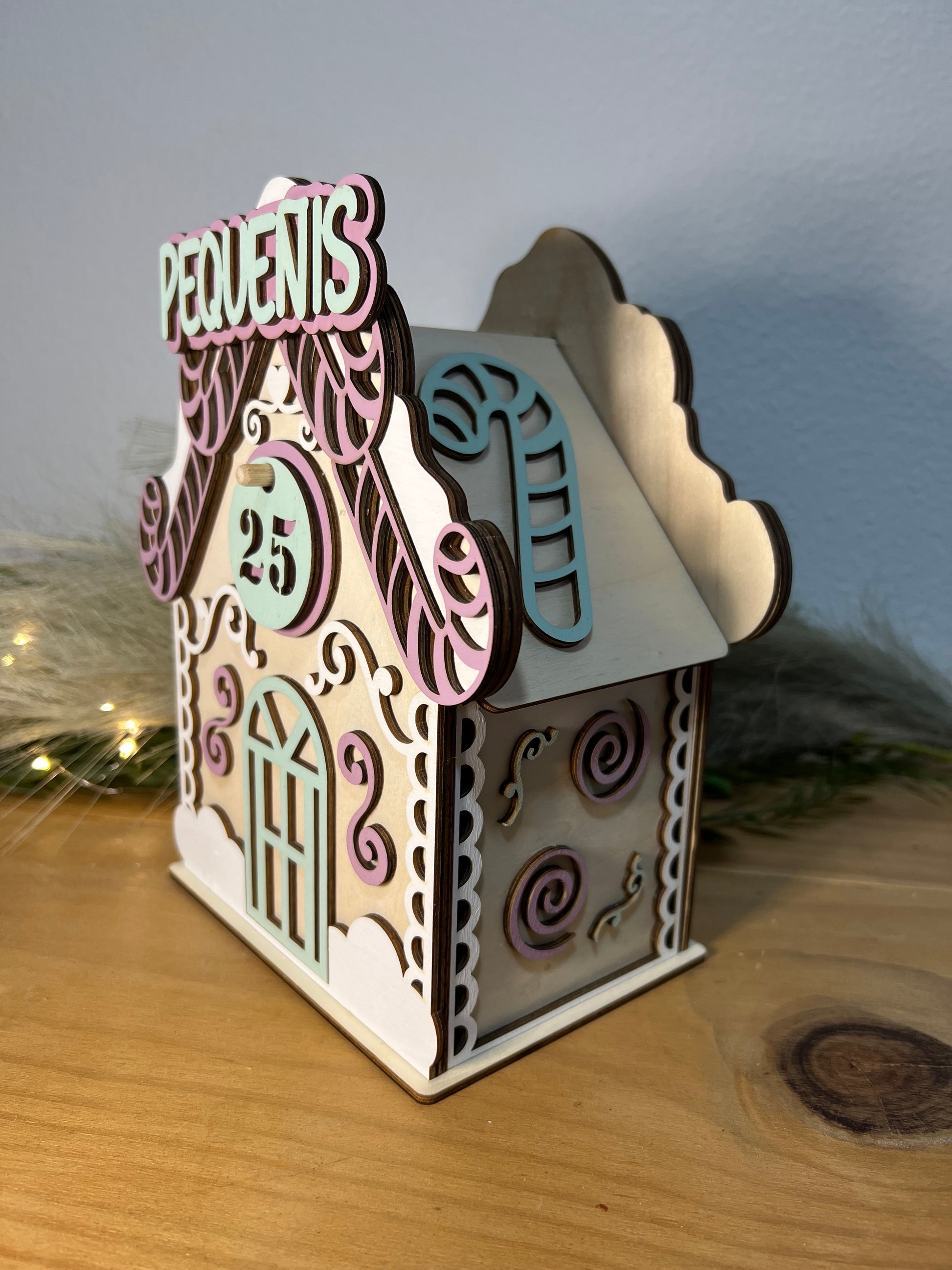 Calendario de adviento en forma de casita de navidad. Tiene 25 fichas para ir cambiando cada día del mes, hasta llevar a Navidad! Cada día los peques cambian la ficha y cuando se despierten, al abrir el tejado encontrarán un detallito!!
