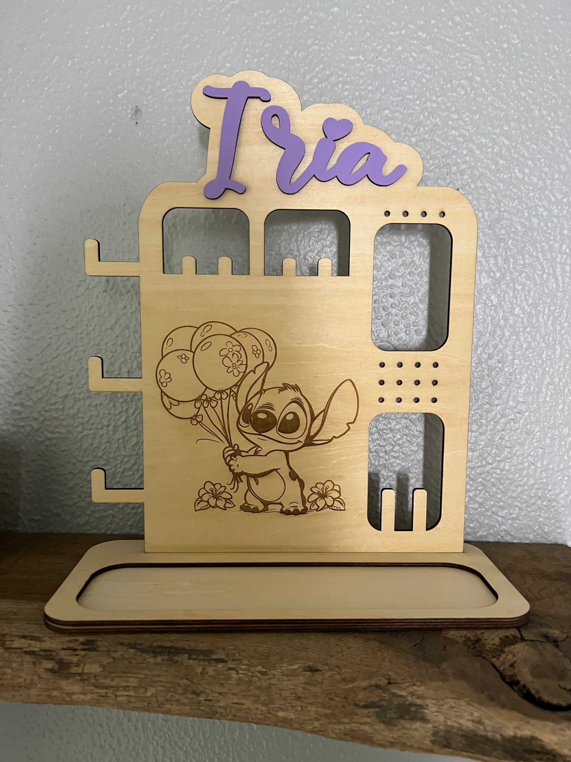 Joyero vertical con bandeja. Mide 30cm de alto x 24 de ancho. Madera de 3 mm de grosor.