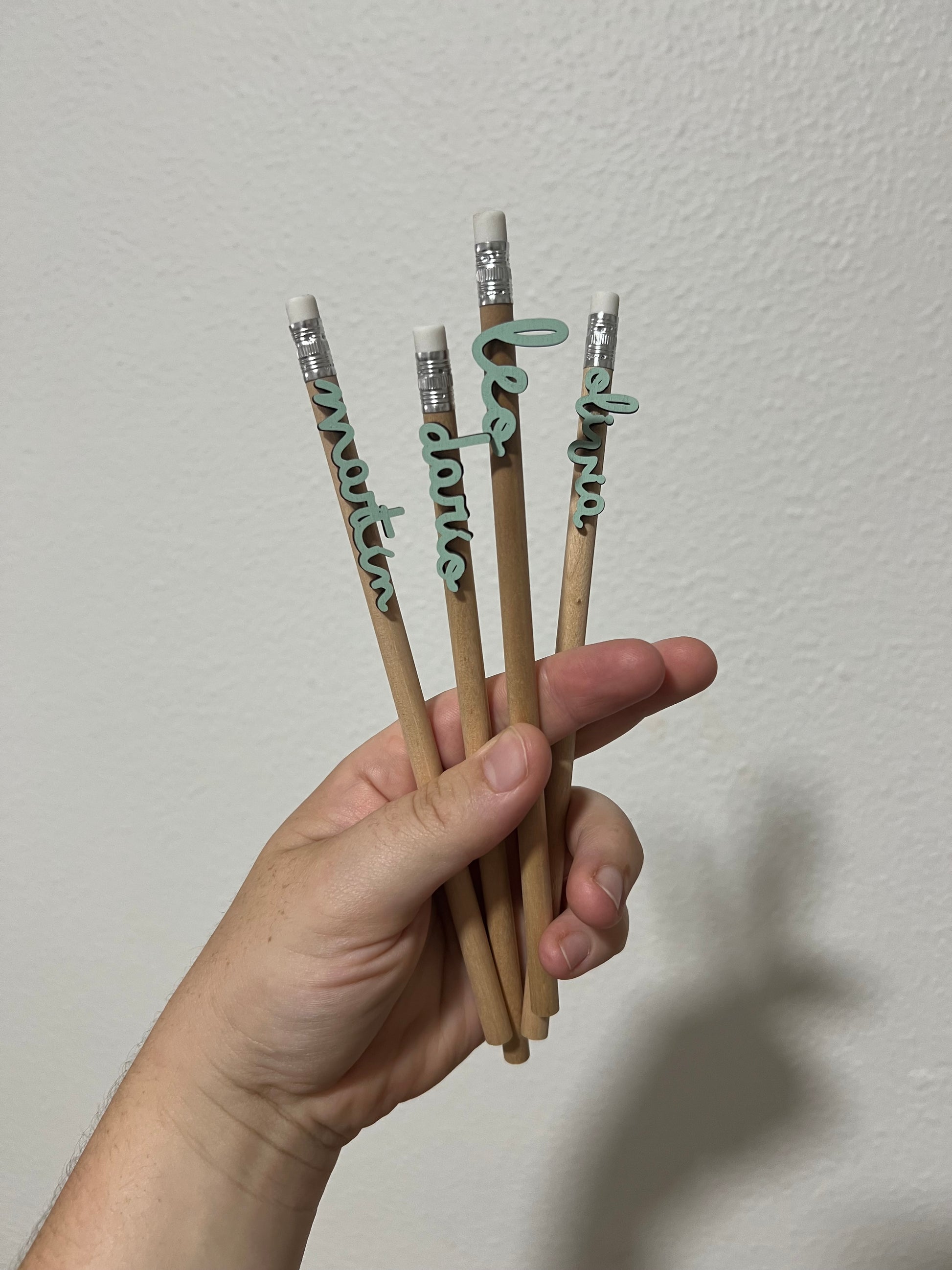 Lápiz con goma en parte superior, personalizado con nombre en madera pintada