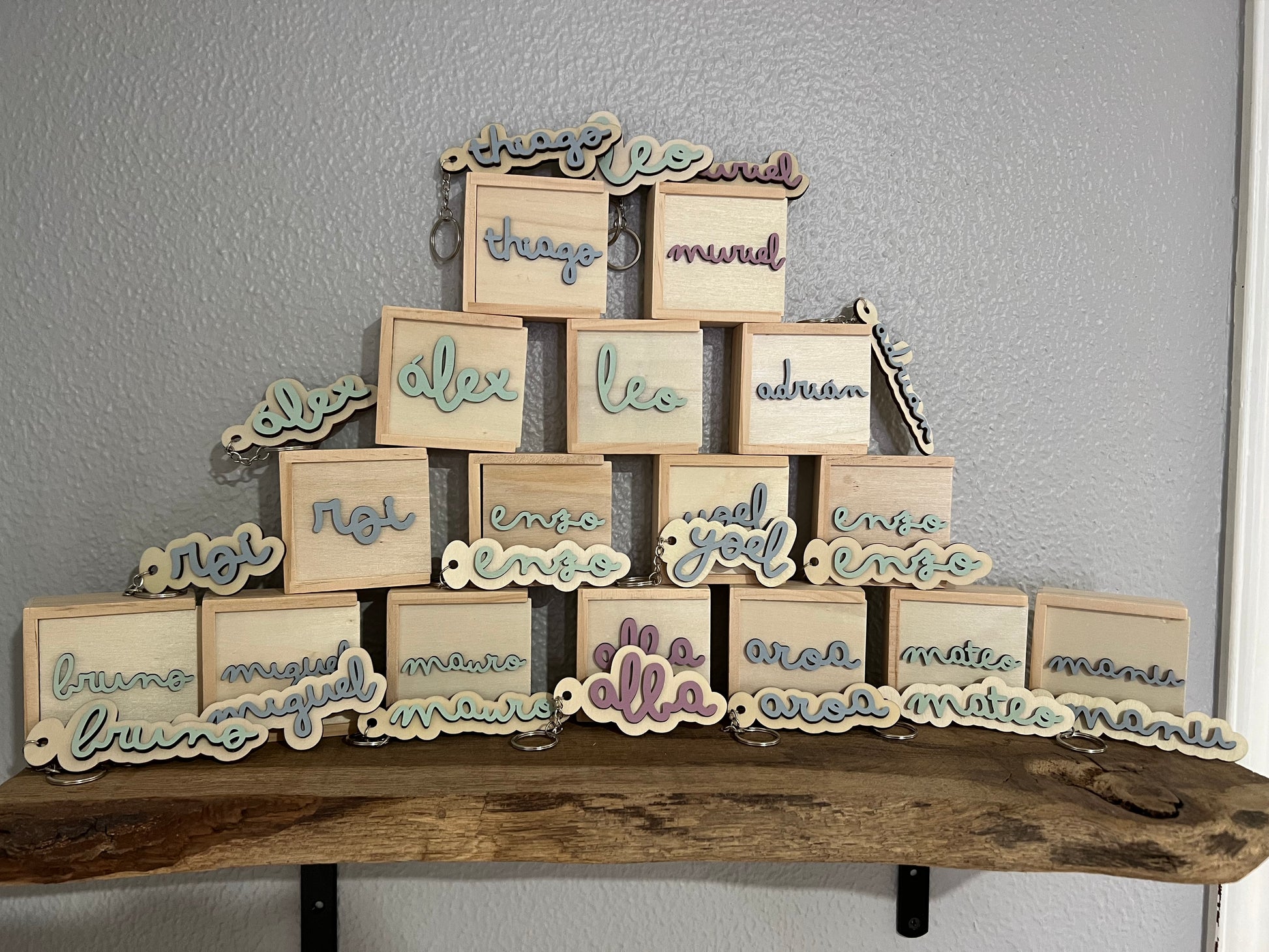 Pack para eventos de juego 3 en raya de madera y colgante para mochila a juego