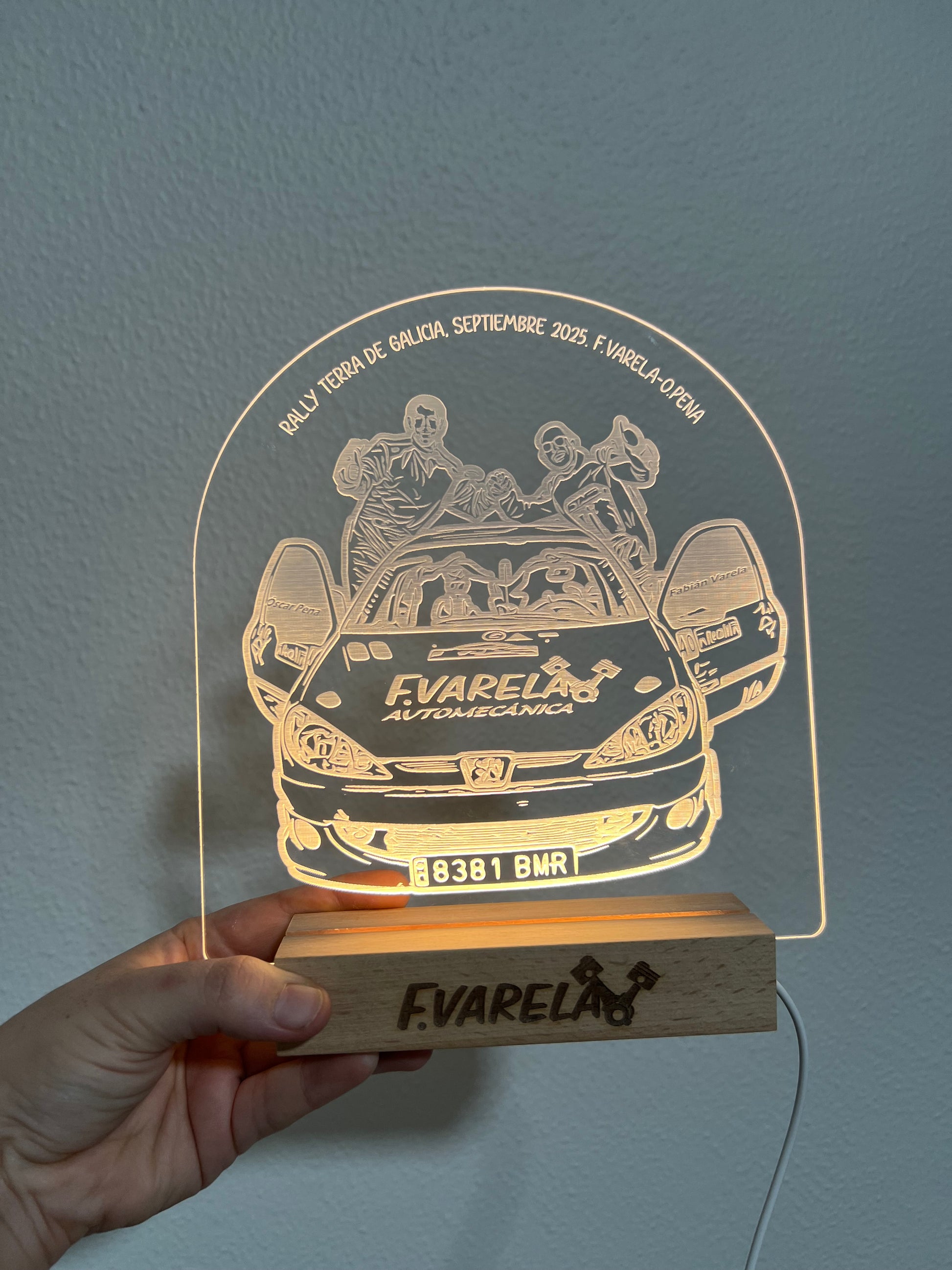 Lámpara de metacrilato, base de 15x3cm, con luz blanca y cable usb.